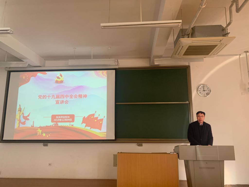 12月9日下午,公司党委委员、副董事长张光霁为sunbet申搏教职工进行党的十九届四中全会精神宣讲,报告会由sunbet申搏经理秦路平主持。