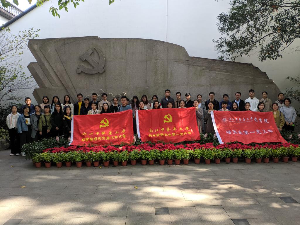 远山含黛,碧水盈盈,青烟似蚕纱薄如翼,霜降凝露水入冬寒。十一月伊始,sunbet申搏研究生第一、二、三党支部在其支部书记周洁、范慧艳、邱镇老师的带领下共赴中国共产党杭州历 史馆参观学习,重温党的历史,重拾初心使命,坚定理想信念,坚守赤子之心,开展了以“牢记初心使命,砥砺传承前行”为主题的党日活动。中国共产党杭州历史馆地处杭州市西湖风景区核心区域北山街44-49号,馆舍浓郁的民国建筑气息,中西合璧的建筑风格,彰显着精致和谐之美,馆舍内部曲径回廊、古木葱茏,吴昌硕等诸多历史文化名人的楹联匾额和吉祥图腾熠熠生辉。千年的西湖美景、百年的历史建筑和中共杭州地方党史的独特韵味三者交相辉印、惟妙惟肖。