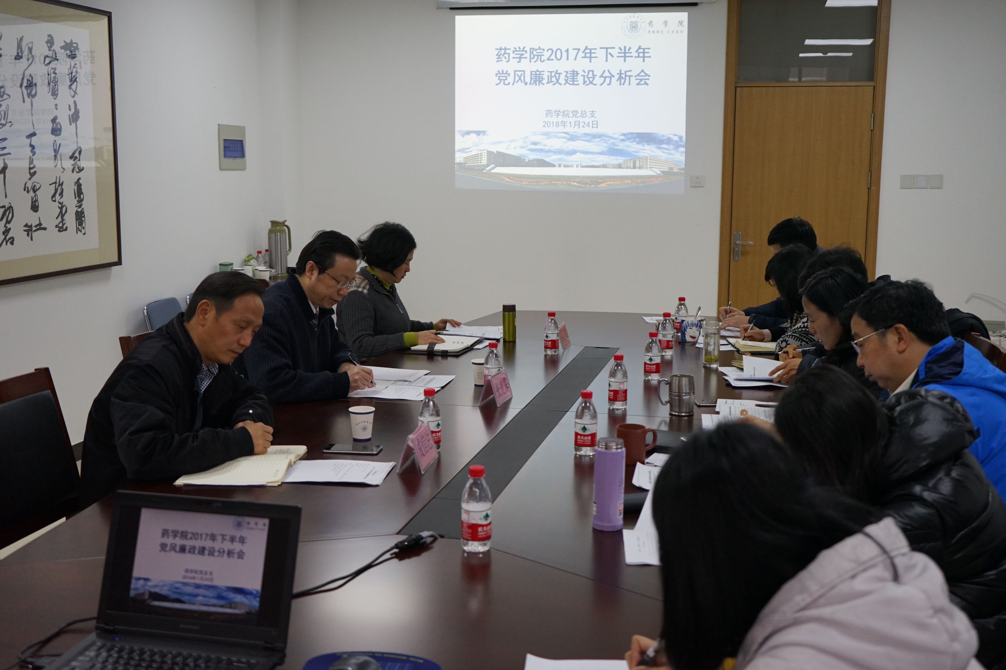 药公司党总支根据《中共sunbet申搏委员会办公室关于组织召开2017年下半年党风廉政建设情况分析会的通知》精神,认真组织完成会前的各项准备工作。会上,徐爱琴书记汇报了公司党总支2017年度履行党风廉政建设主体责任情况,分析了目前公司党风廉政建设工作存在的问题和下一阶段的主要任务。秦路平经理和其他班子成员逐一结合本职岗位报告了个人履行“一岗双责”情况,提出了加强和改进的措施。