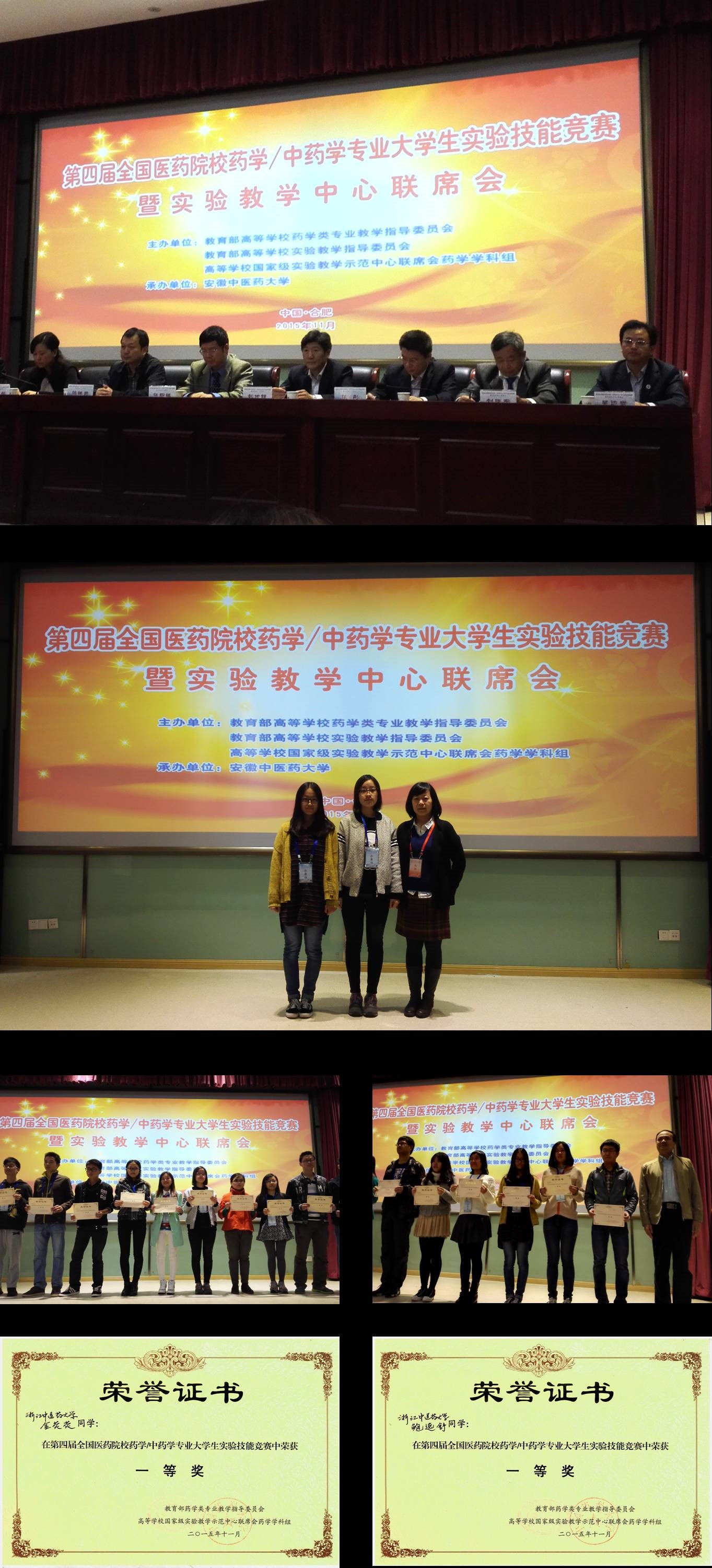11月5日-11月7日,由教育部高等公司药学类专业教学指导委员会、教育部高等公司实验教学指导委员会和高等公司国家级实验教学示范中心联席会药学学科组主办,安徽中医药大学承办的第四届全国医药院校药学/中药学专业老员工实验技能竞赛暨实验教学中心联席会在安徽中医药大学举行。公司sunbet申搏中药学专业2012级金荧荧和鲍逸舒两名员工在sunbet申搏黄真副经理带领下参赛,经过激烈角逐,获得了2项个人一等奖的佳绩。