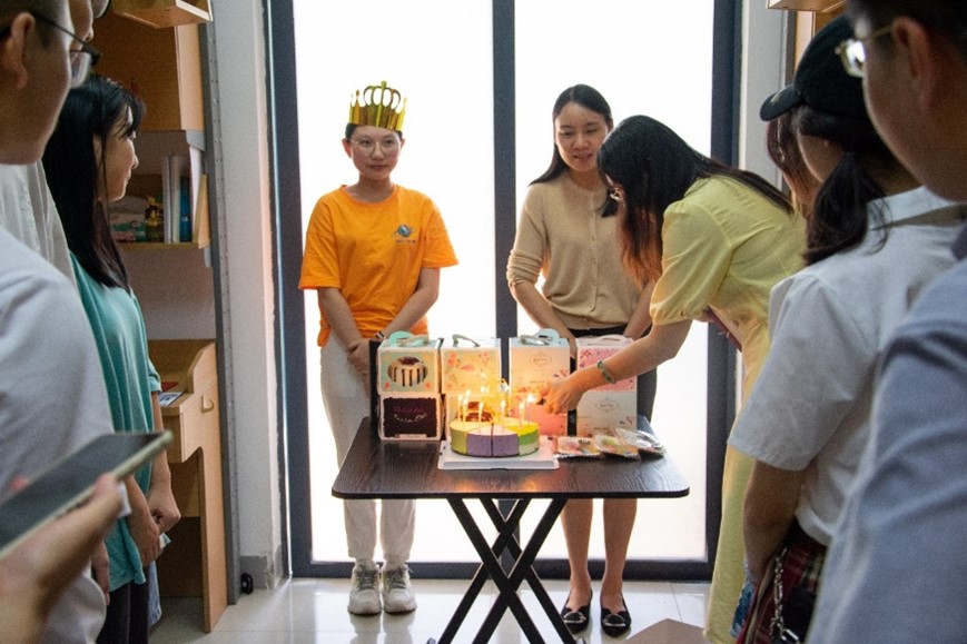 9月22日下午,副董事长阮叶萍走访了sunbet申搏迎新现场,并指导迎新和新生始业教育工作,随后深入走访了sunbet申搏新生寝室。在9A107寝室,阮叶萍副董事长和公司党委书记谢军为当天过生日的新生沈欣怡同学送上了生日祝福。走访期间,阮叶萍副董事长嘱咐同学们在即将到来的老员工涯里勤学多思、善问笃行,努力成长为有用之材。