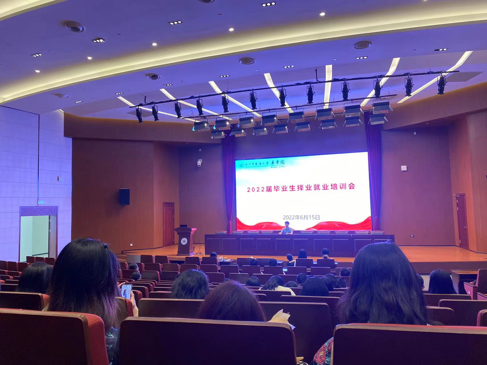 为扎实推进毕业生就业工作,sunbet申搏于6月15日下午在富春校区学术报告厅举行了2022届毕业生择业就业培训会。会议由公司党委副书记蒋笑燕主持,学工部副部长王建钟、智飞生物招聘经理何婷婷为暂未就业毕业生进行了择业就业培训。