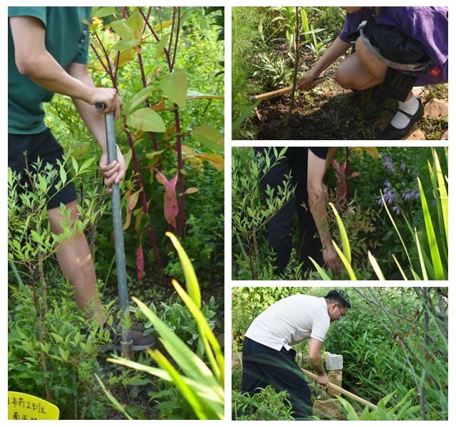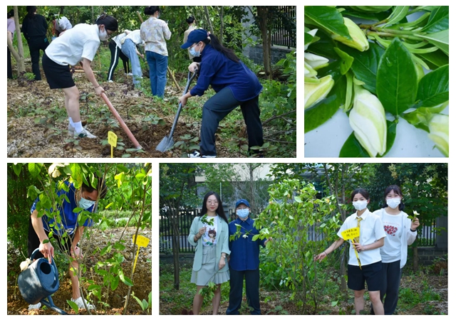 纵使天气炎热,也无法阻挡同学们的澎湃热情。夏日傍晚,来自各个班级的代表们在药用植物园里刨坑、种苗、浇水,挥洒着辛勤的汗水,以班级强大的集体凝聚力为养分,合力种下这蕴含特殊意义的“百草”