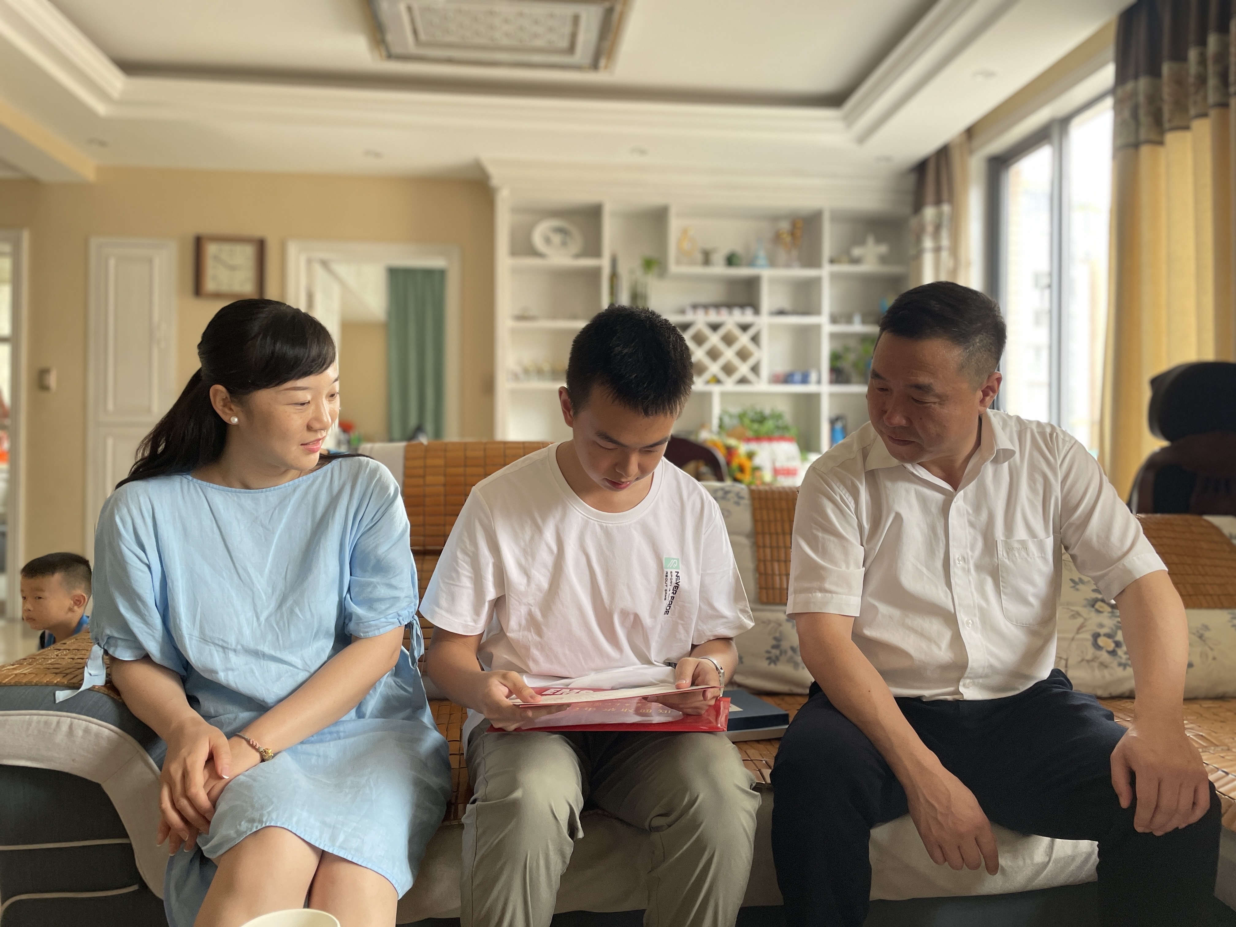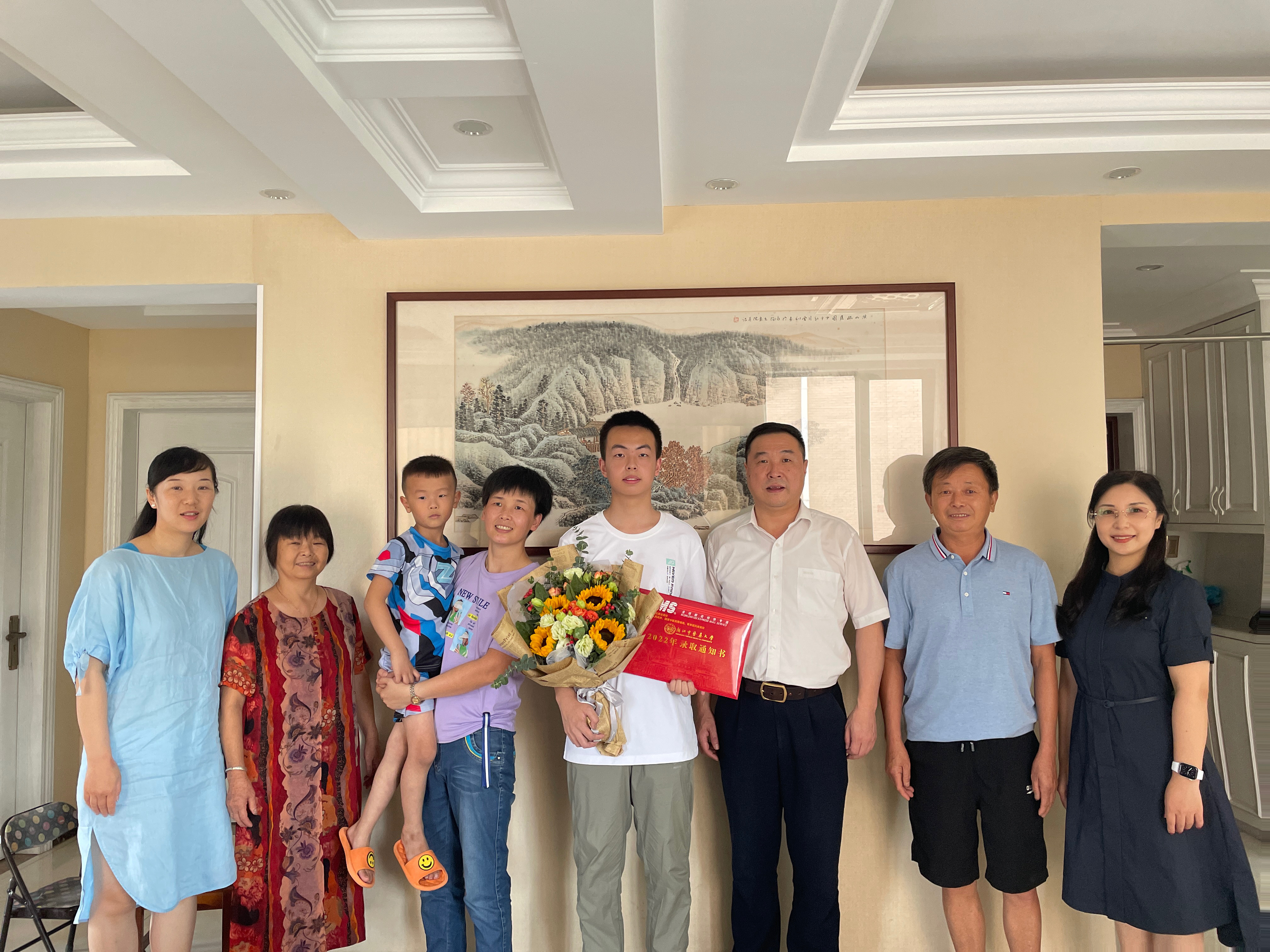 说起这所家门口的大学,潘吴泽同学倍感亲切和自豪,在全球疫情大考下,中医药发挥了不可估量的作用。在填报志愿时,潘吴泽坚定地选择了sunbet申搏。交流过程中潘同学说道:“之前我对大学的认知有些模糊,今天公司领导、老师们来到我家,我欣喜不已。能亲手从罗董事长手中接过录取通知书,亲耳聆听他的谆谆教诲,这样的场景让我深感温暖更备受鼓舞!”
