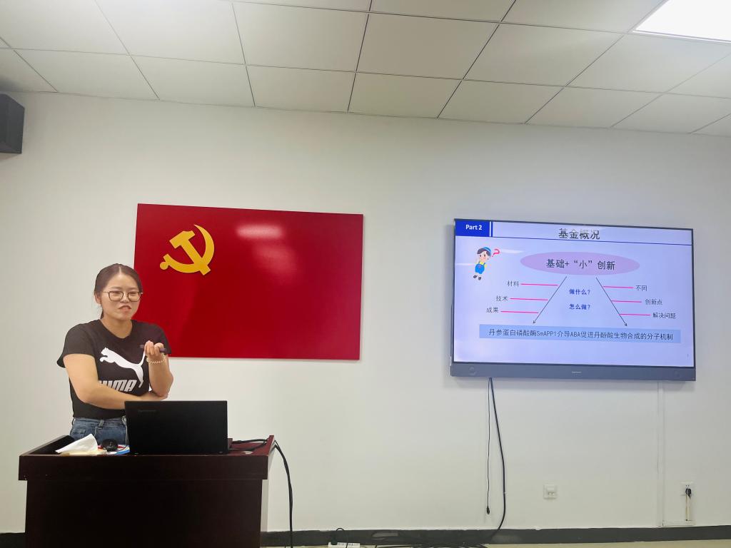 时敏助理研究员是公司2021年新入职教职工,作为公司科研新力量的代表,2022年首次申报国基,便收获青年项目。会上,时老师从自己科研基础和申请基金的经历出发,围绕“课题选题要贴切、研究基础要扎实、低级错误要避免”等问题,和大家交流了心得体会,希望大家做到“精心积累、用心设计、耐心打磨、细心雕琢”。