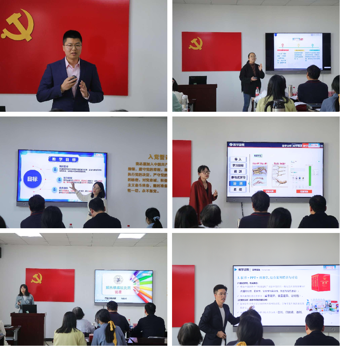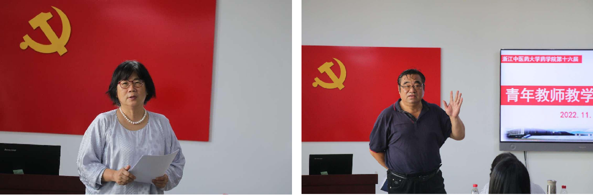 说课结束,邵加教授和严云良教授分别做精彩点评。邵加教授结合参赛教师的表现,指出选手在说课过程中的一些共性问题,并就每位选手的具体情况逐一进行点评。严云良教授分享了青年教师参加省级教学技能比赛的实际案例和宝贵的经验。此外,谷经理还邀请了药物分析教研室主任寿旦教授分享对本次比赛的感受,寿教授用“学习”、“欣喜”、“专业”三个词做了高度概括。