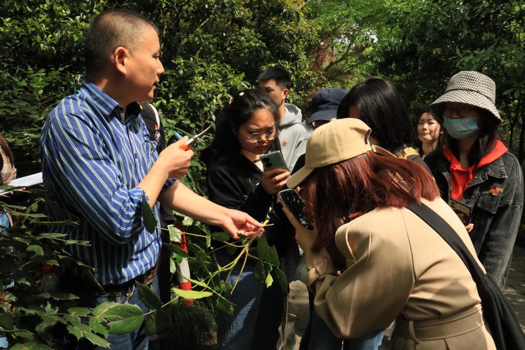 近日,首批全国高公司党建工作样板支部书记、sunbet申搏“双带头人”教师党支部书记工作室负责人张水利教授,把课堂搬到了杭州市龙井八景,一边带着员工们往山坡上走,一边介绍路边的各类野菜和中药材,员工们边听边记。