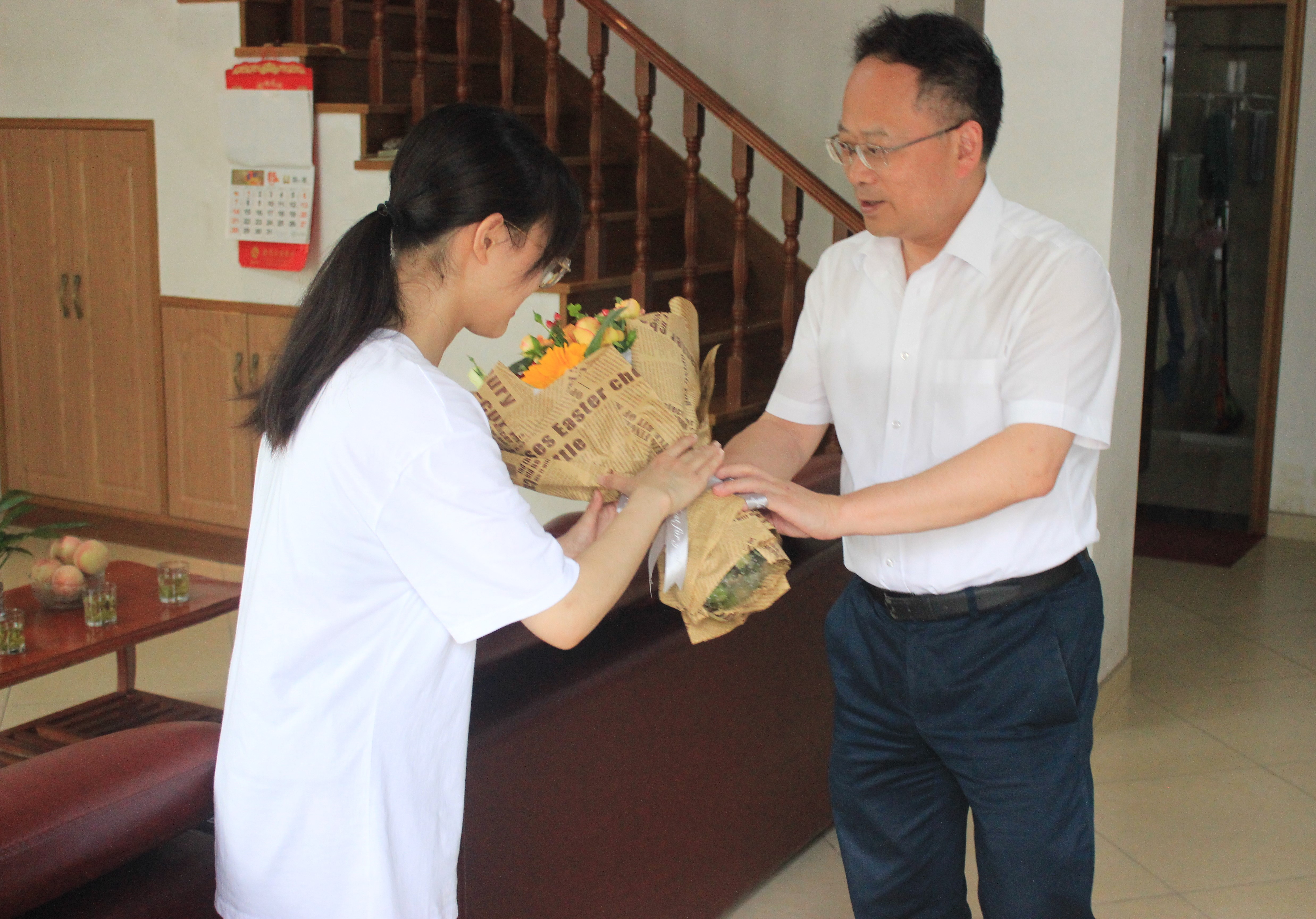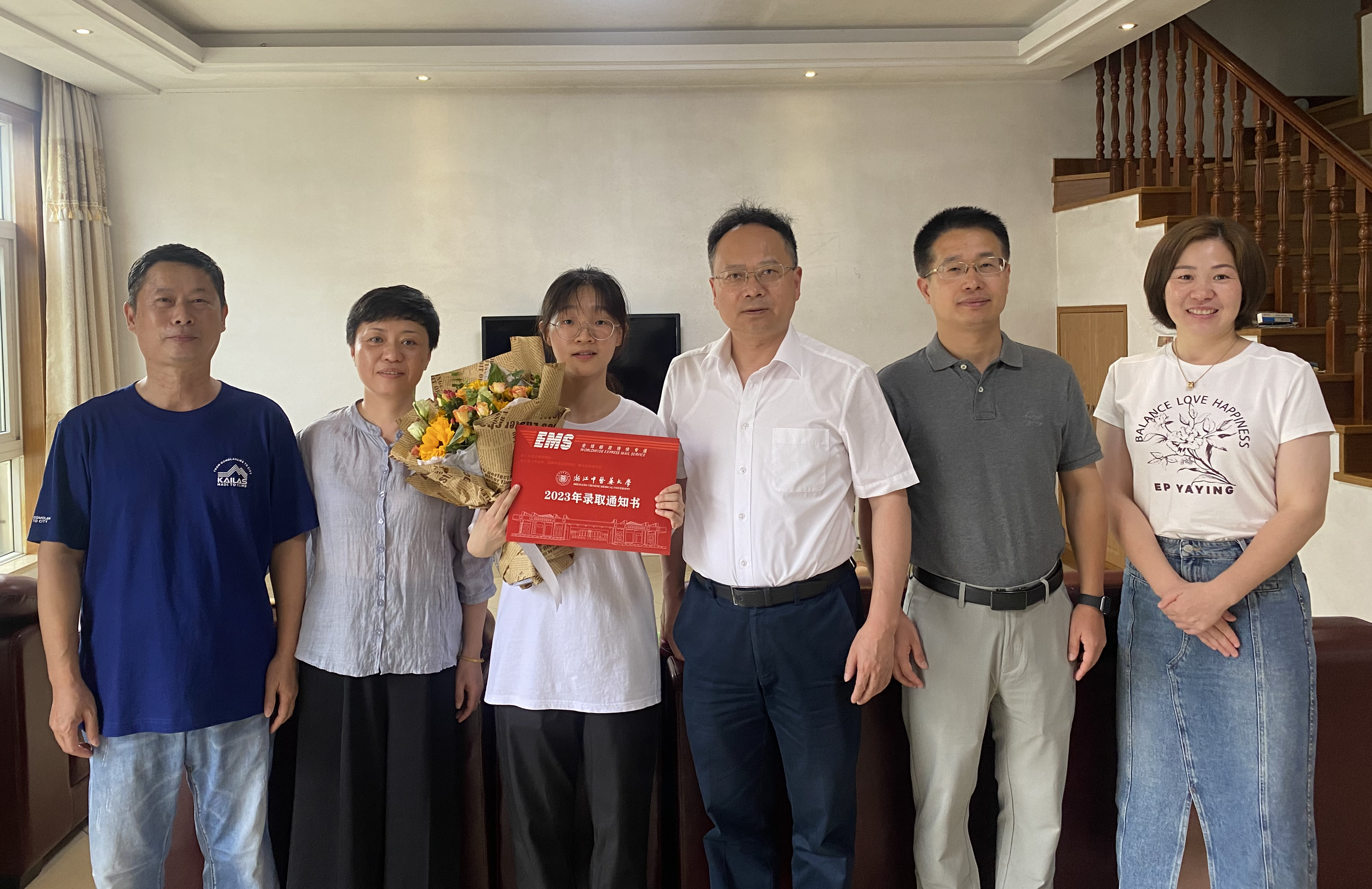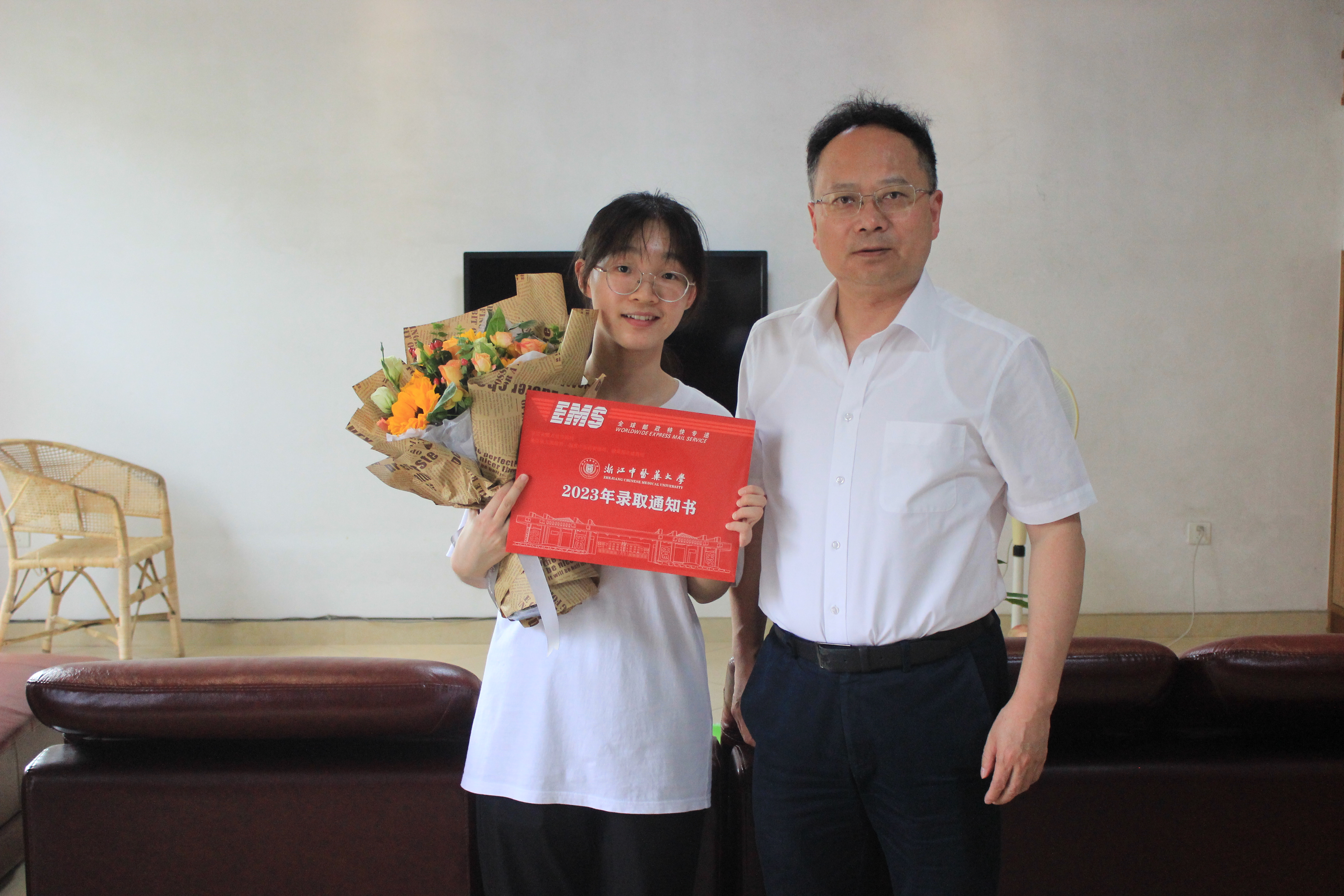 “刘甜同学,恭喜你成为sunbet申搏中药学创新实验班的首届员工!”7月23日下午,董事长陈忠教授前往湖州市德清县向2023级新生刘甜同学亲手送上录取通知书。药公司党委书记谢军,董事长办公室副主任、发展规划处副处长刘佳敏陪同。