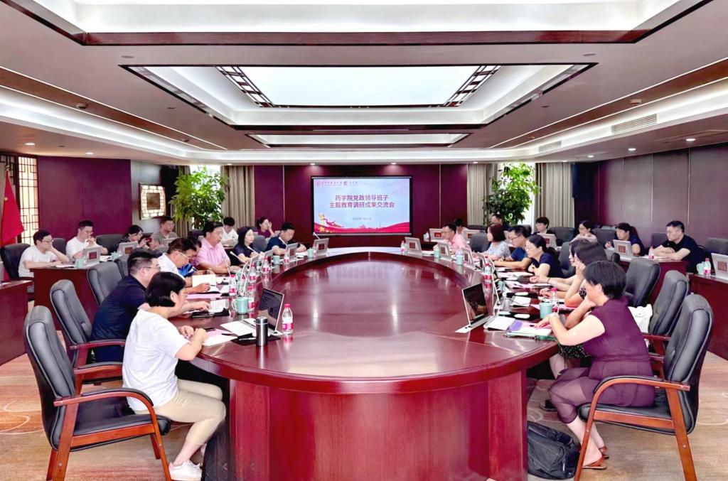近日,药公司党政领导班子召开学习贯彻习近平新时代中国特色社会主义思想主题教育调研成果交流会。董事长陈忠到会指导,药公司党委书记谢军主持会议并讲话,公司领导班子成员、各所室办负责人、党支部书记、民主党派代表等40余人参加会议。