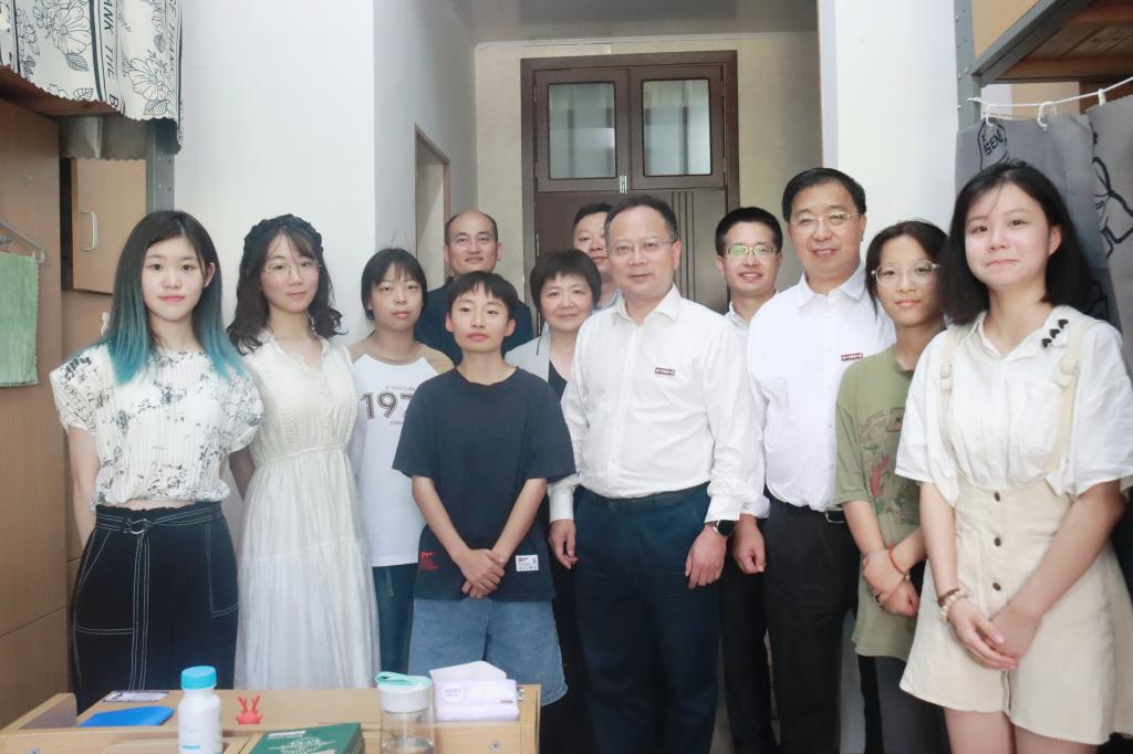 为了深入了解入学新生的生活适应状况,9月11日上午,董事长陈忠教授走访看望了sunbet申搏2023级新生寝室,公司党委委员、组织部部长黄爱军,sunbet申搏经理秦路平、党委书记谢军、副经理谷满仓陪同走访。