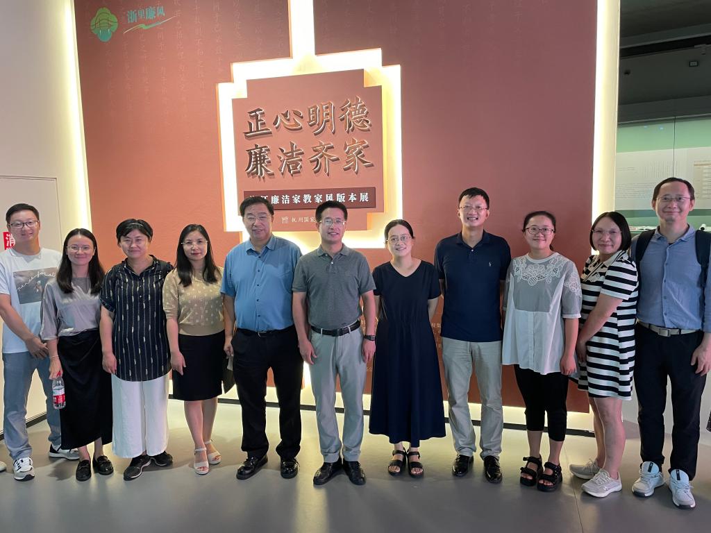 国家版本馆杭州分馆对外接待参观以来,就迅速成为杭州市的网红打卡之地。它的建筑设计围绕“宋代园林神韵的当代藏书建筑”展开,包括主书房、南书房、文润阁、山体库房等共计13个单体。在现场解说员的带领下,党员师生代表参观了“潮起之江——‘重要窗口’主题版本展”、“文献之邦——江南版本文化概览”展、“盛世浙学——浙江文化研究工程成果展”、“千古风流——浙江历史文化名人展”四个主题展览,大家亲眼目睹了承载厚重历史文化的古籍《四库全书》,细细研读了馆藏的浙江廉洁家教家风版本,感受到了版本背后的中华文化生命力和家风家训对浙江人精神世界的影响。