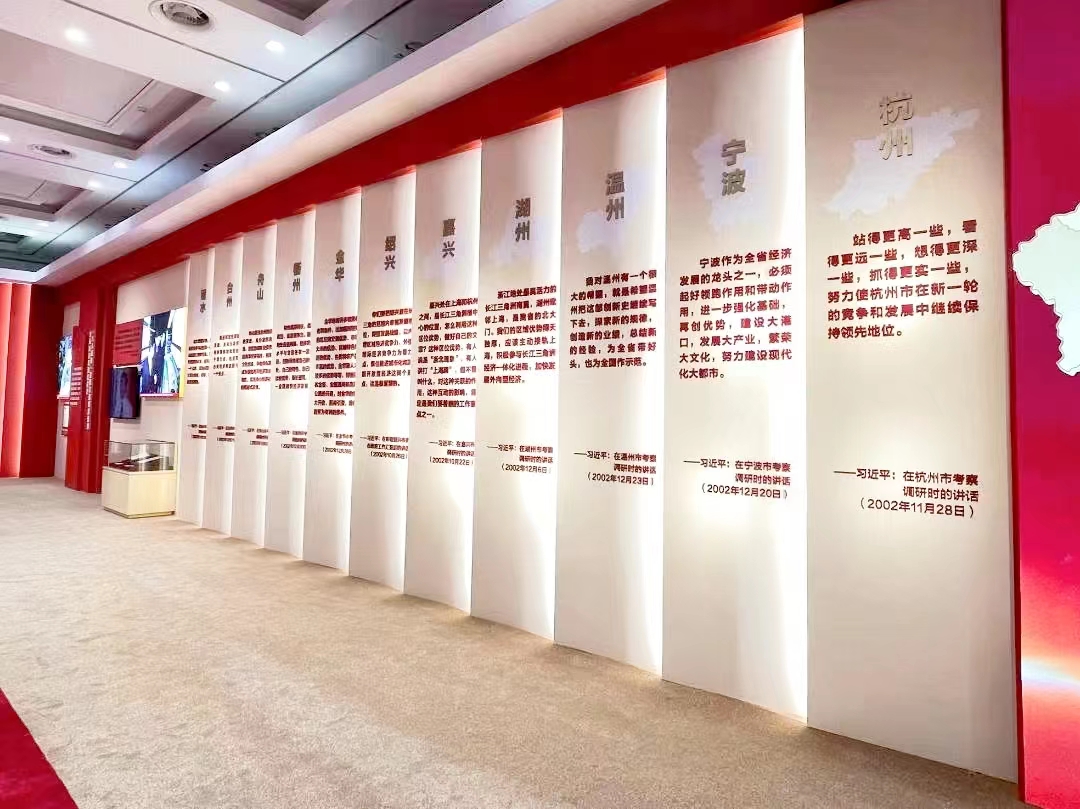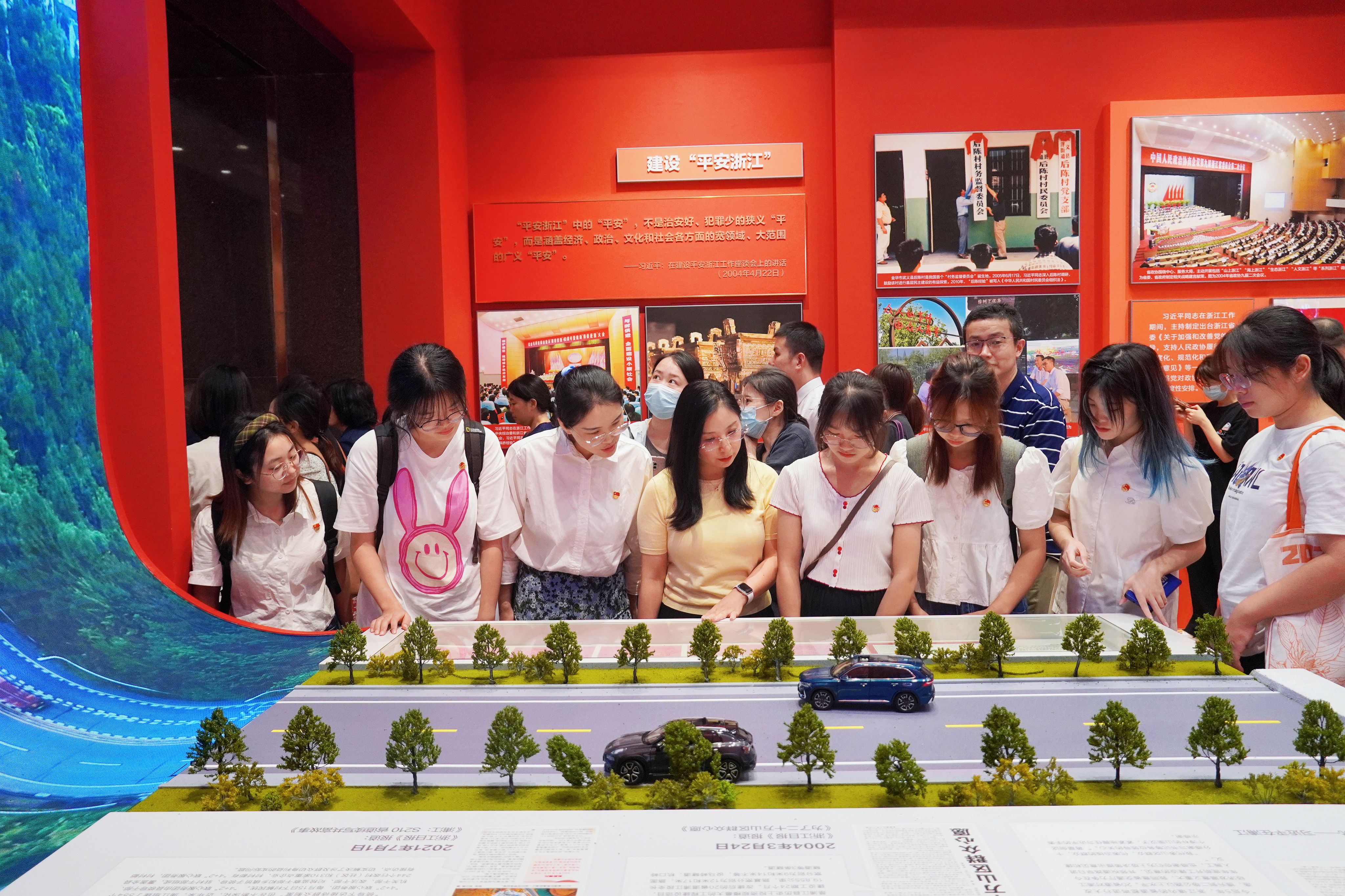 大家通过鲜活的事例、珍贵的照片、精彩的视频资料以及承载着时代记忆的展品,回顾着浙江的沧桑巨变和发展成就,体悟着习近平总书记的谆谆教诲和殷殷嘱托,沉浸式地走近“八八战略”,更加深刻感受到伟大思想同伟大实践相互激荡形成的凝聚力和创造力。