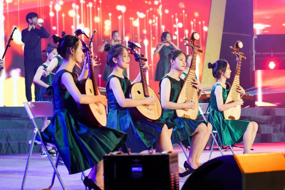 飞火流星,光华璀璨。迎新晚会在校艺术团民乐队、动脉血乐队演奏的新民乐《富春启航》中开启,公司2020级封毓洁同学作为校艺术团民乐队队员参演,她弹奏的中阮技艺娴熟,和艺术团的同学一起为我们开启一场视听盛宴。