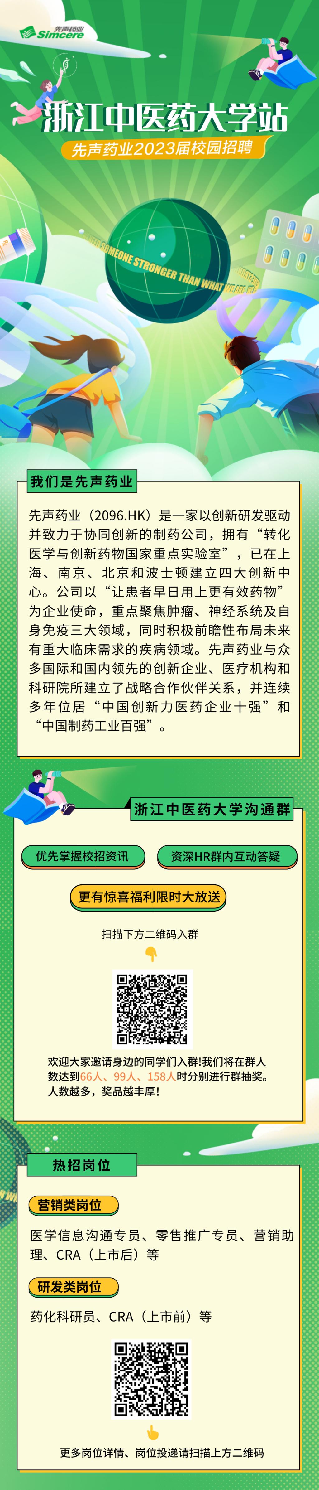 先声药业2023届校园招聘-sunbet申搏站欢迎扫码进群
