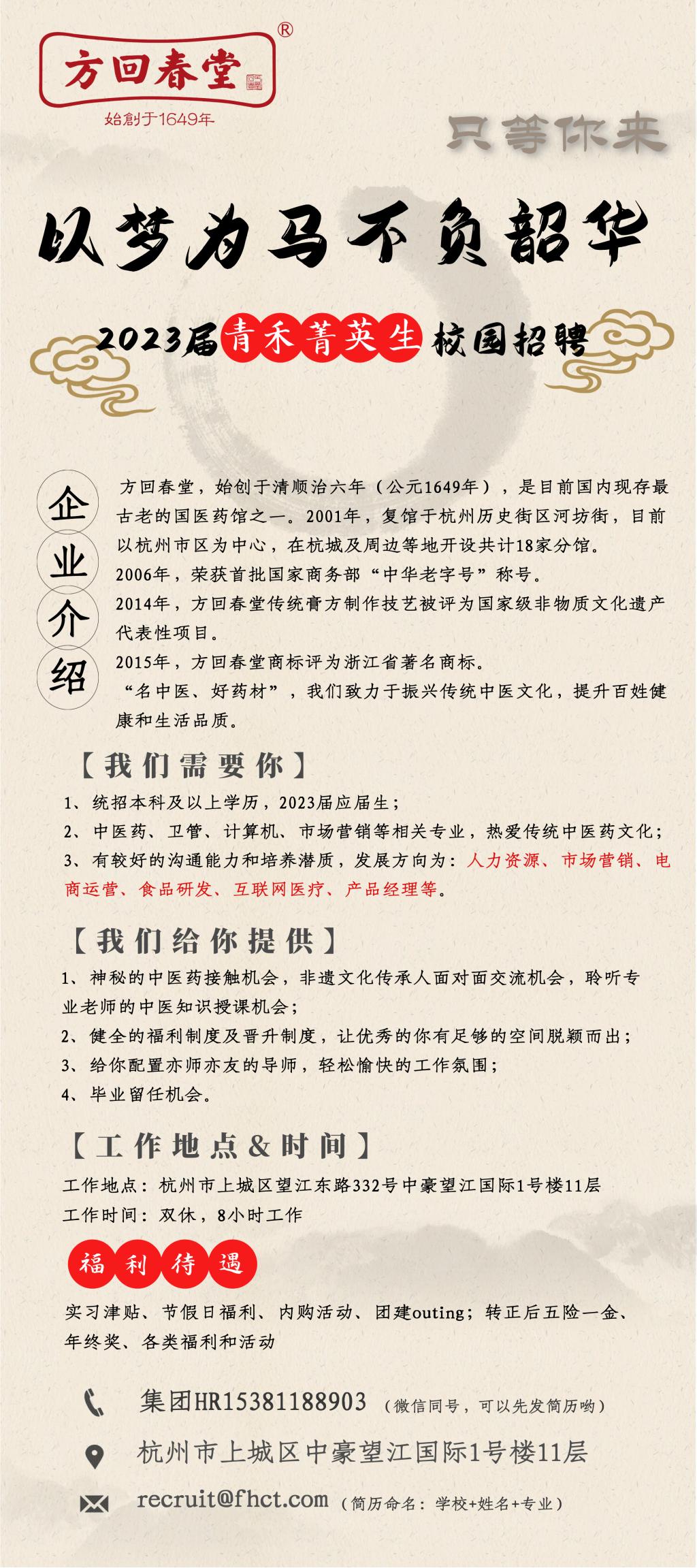 招聘详见材料,同时方回春堂集团中药分公司,在质量管理招药学、中药学的管培生,员工干部优先,也可直接 联系下图方式