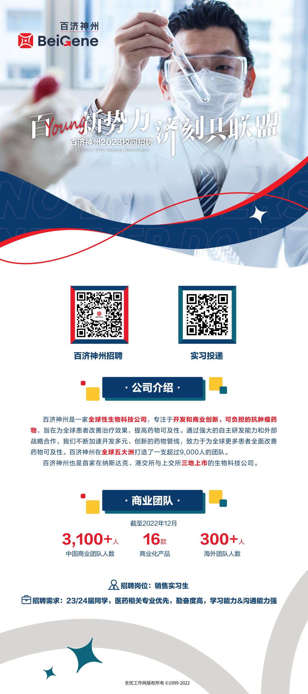 网红创新药企百济神州2023校园招聘及实习生项目正式启动!