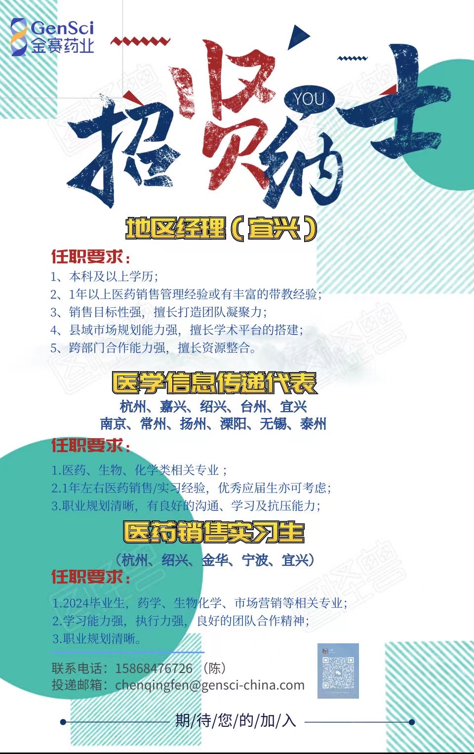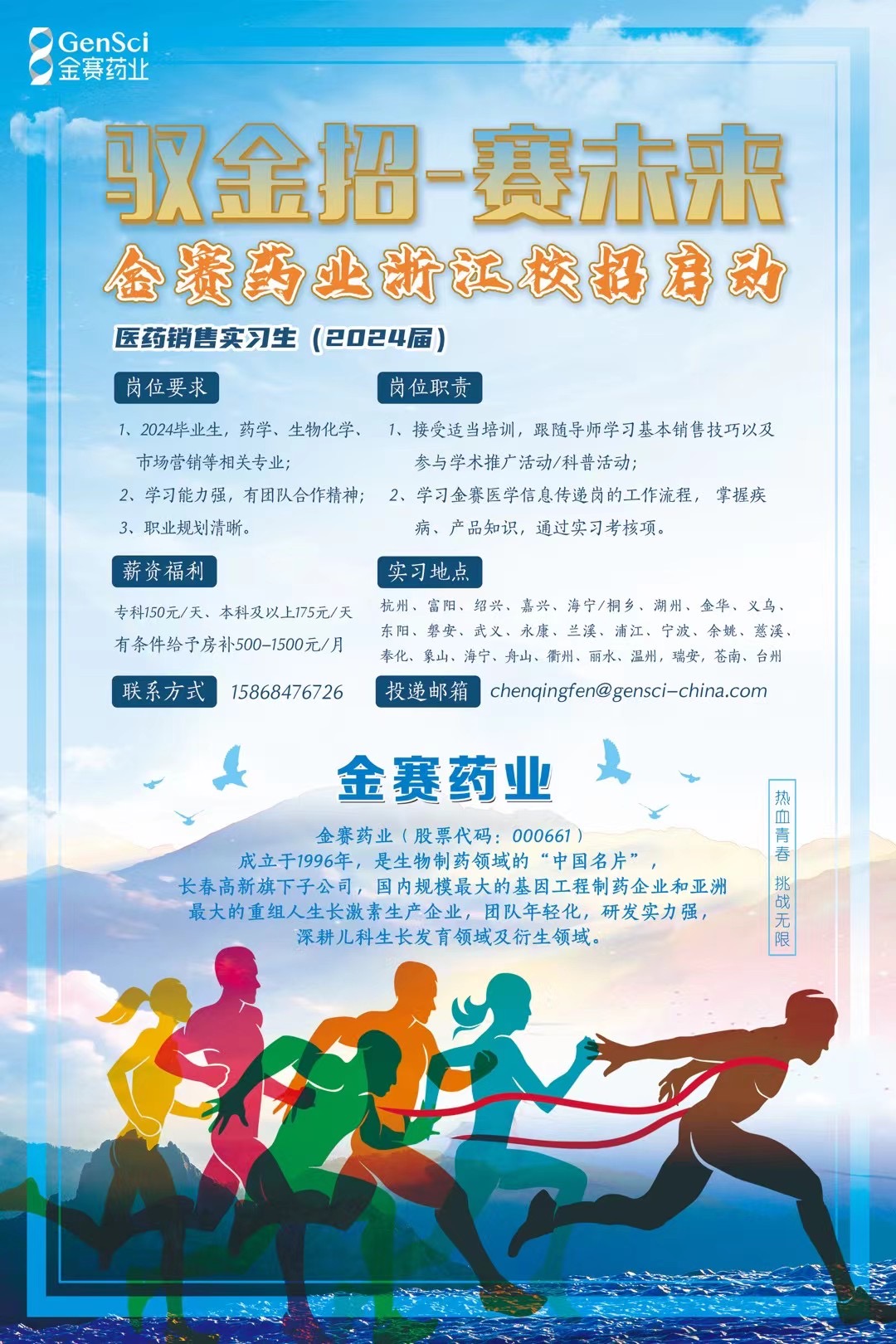 金赛药业招聘(包含核心市场医学信息传递代表、医药销售实习生等多个岗位)