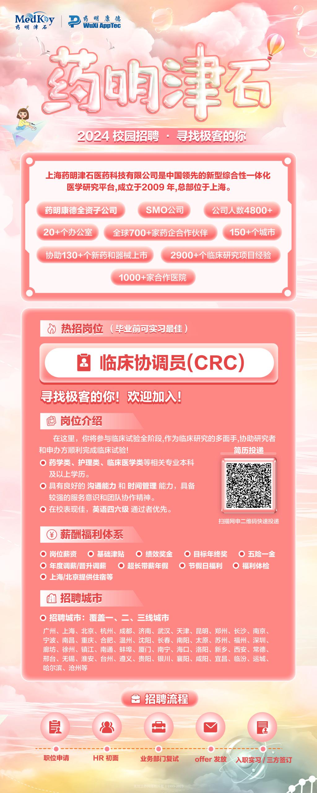 【招聘岗位】临床协调员CRC,医护药等相关专业均符合要求