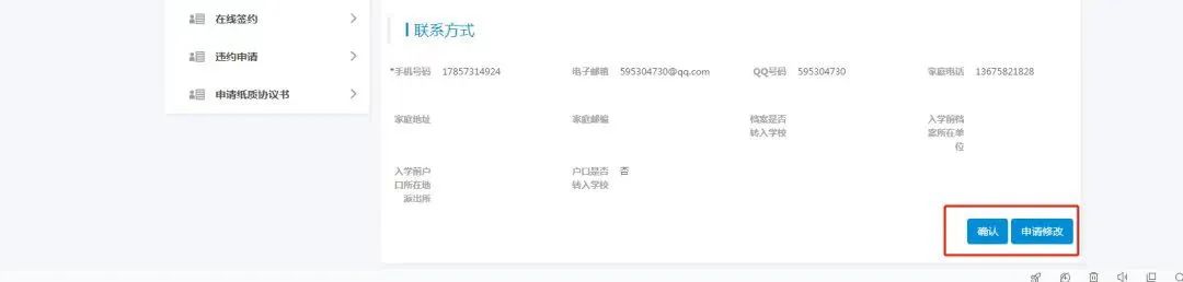 注:若信息有误,请点击【申请修改】,修改相应字段(目前可修改的字段有姓名、民族、城乡生源、政治面貌和联系方式)。遇到无法修改的字段,联系就业指导中心修改。