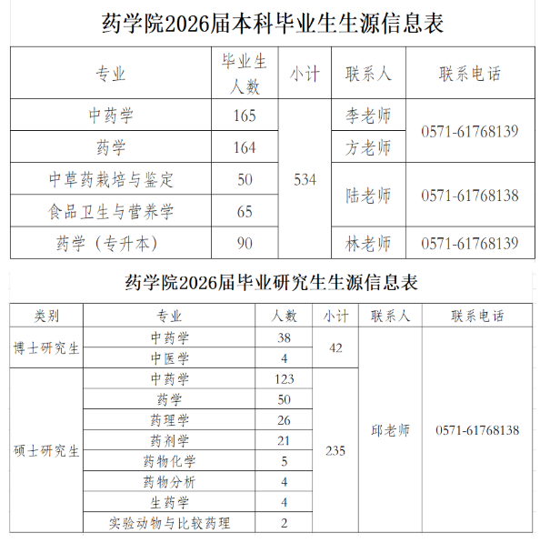为推进校企精准对接,助力用人单位选聘公司优秀毕业生,现整理2026届毕业生生源信息予以公布,2026届毕业生本科515人、硕士177人、博士29人,2026届本科生教学实习时间为2025年12月下旬至2026年5月,20周。单位如有招聘需求,欢迎来电咨询。