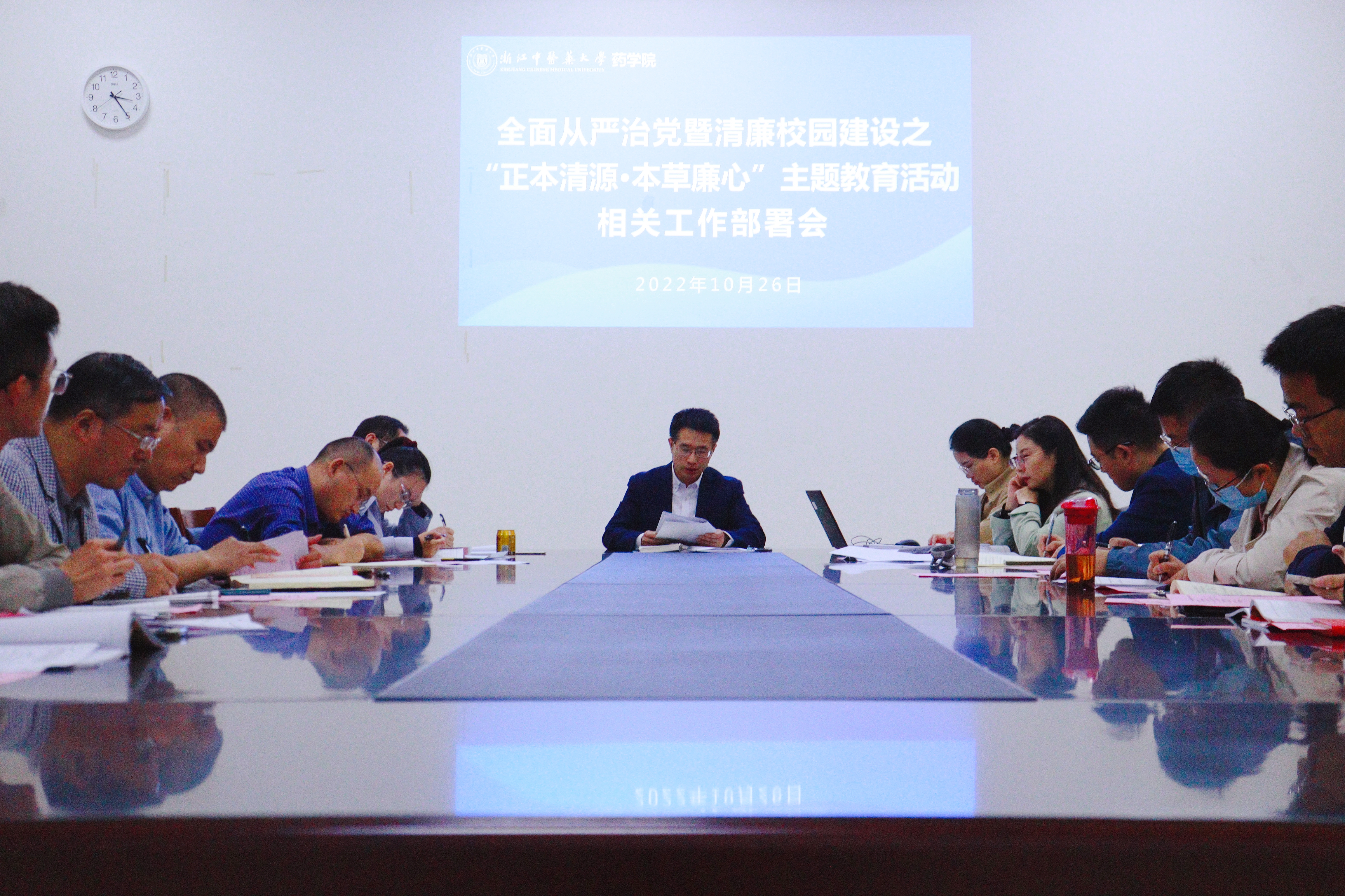 为深入学习贯彻党的二十大精神,贯彻落实2022年浙江省教育系统全面从严治党暨清廉公司建设推进会精神,扎实推进清廉公司、文明校园建设,sunbet申搏于10月26日下午召开全面从严治党暨清廉校园建设之“正本清源•本草廉心”主题教育活动部署会。公司党政领导班子、各党支部书记、党政办、教科办、学办、团委、分工会负责人参会,会议由公司党委书记谢军主持。与会人员认真学习了党的二十大报告中关于全面从严治党的重要论述,交流了学习体会,全面深刻剖析了公司在全面从严治党、意识形态和师德师风等方面存在的问题,并就相关问题提出整改举措。公司党委书记谢军就下一阶段推进全面从严治党暨清廉校园建设之“正本清源•本草廉心”主题教育活动进行了部署,指出希望通过活动,在全院范围内正树人之本,清思想之源,涵廉洁之心,树清风之气。
