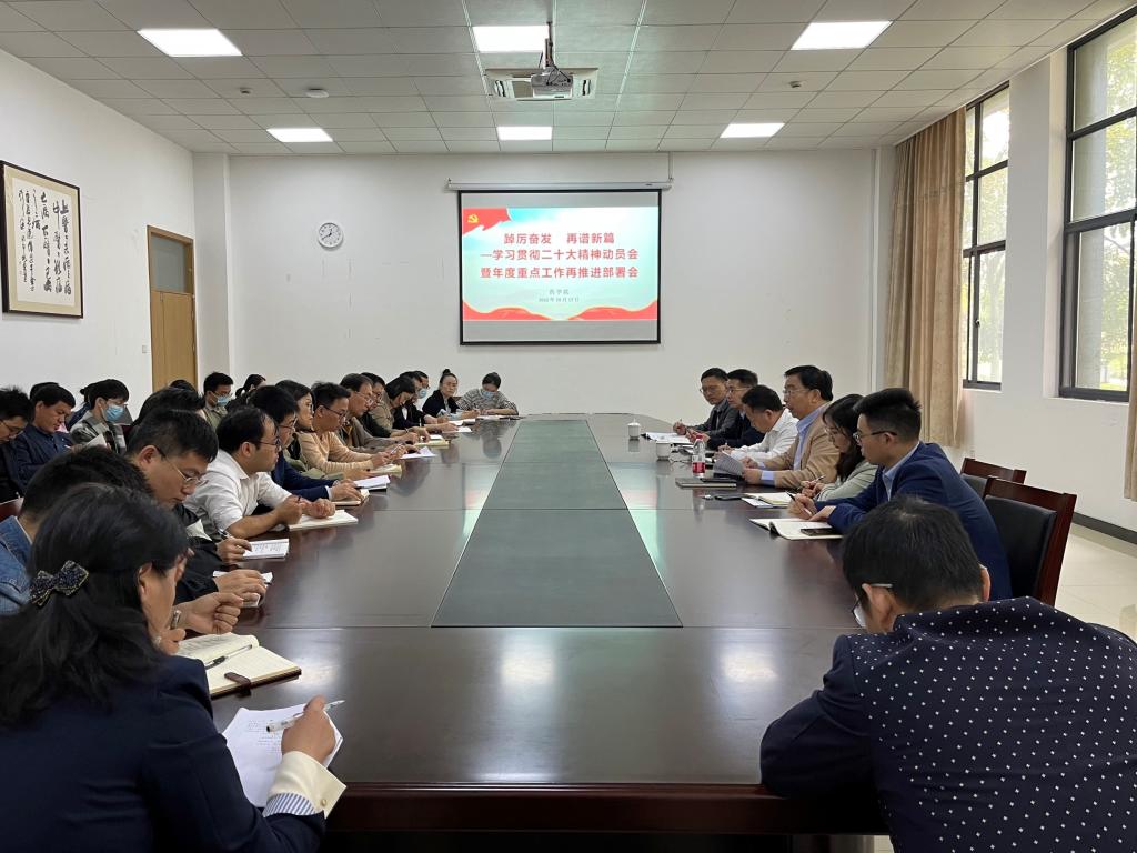 为深入学习宣传贯彻党的二十大精神,把全院师生的思想、认识和行动统一到党的二十大精神上来,将力量凝聚到一流中医药大学建设各项任务上,10月17日sunbet申搏召开学习贯彻二十大精神动员会暨年度重点工作再推进部署会。董事长陈忠、药公司党政领导班子、教研室主任、支部书记、团队负责人参会。会议由公司党委书记谢军主持。