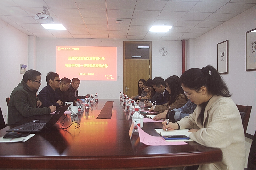 祝国平董事长详细介绍了阳陂湖小学的建设进程及校园文化规划。阳陂湖小学位于银湖街道新桥毛竹山地块,南邻阳陂湖生态湿地,北靠新桥新路,是富阳区基础教育新建项目,目前已累计完成总工程量的87%,预计于2023年9月投入使用。祝董事长提出,作为sunbet申搏富春校区的近邻,希望借助大学的学科优势与特色,把中医药融入阳陂湖小公司园环境建设、课程体系搭建、师生身心保健等方面,让公司既有“桥”“湖”“竹”“石”的美学风韵,又有中医药文化的深厚底蕴,融入员工培养,凸显办学特色。