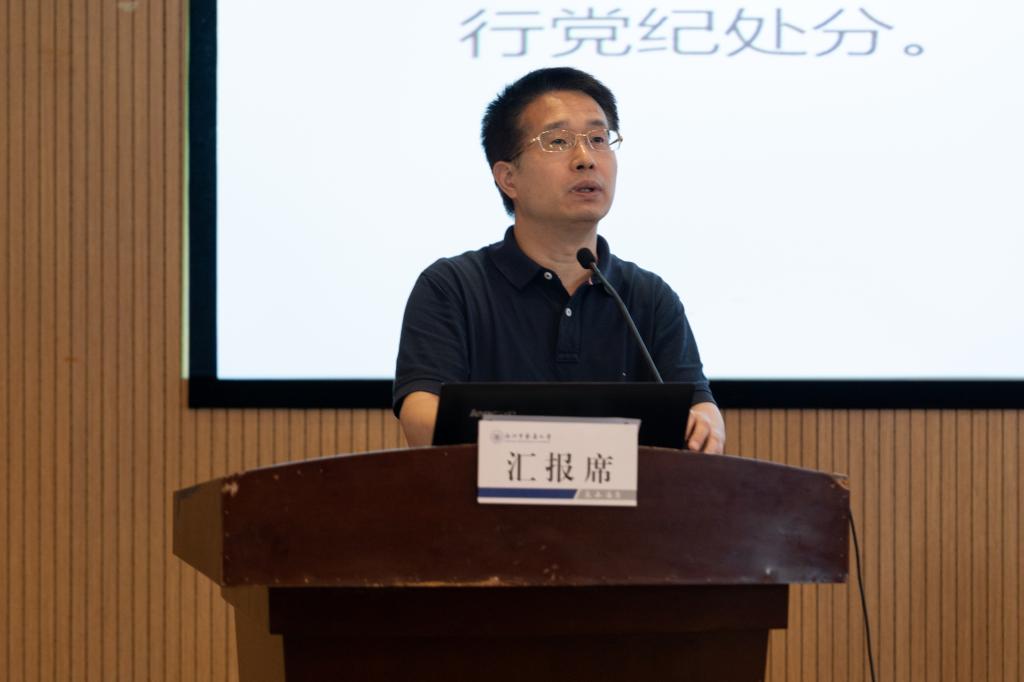 随后,谢军书记结合近期高校违反师德师风的警示案例,进行了深入的剖析和反思。他要求全体教职工要从中吸取教训,引以为戒,不断提升自身的道德修养和职业素养;要学习、践行、弘扬教育家精神,为强国建设、民族复兴伟业作出新的更大贡献。