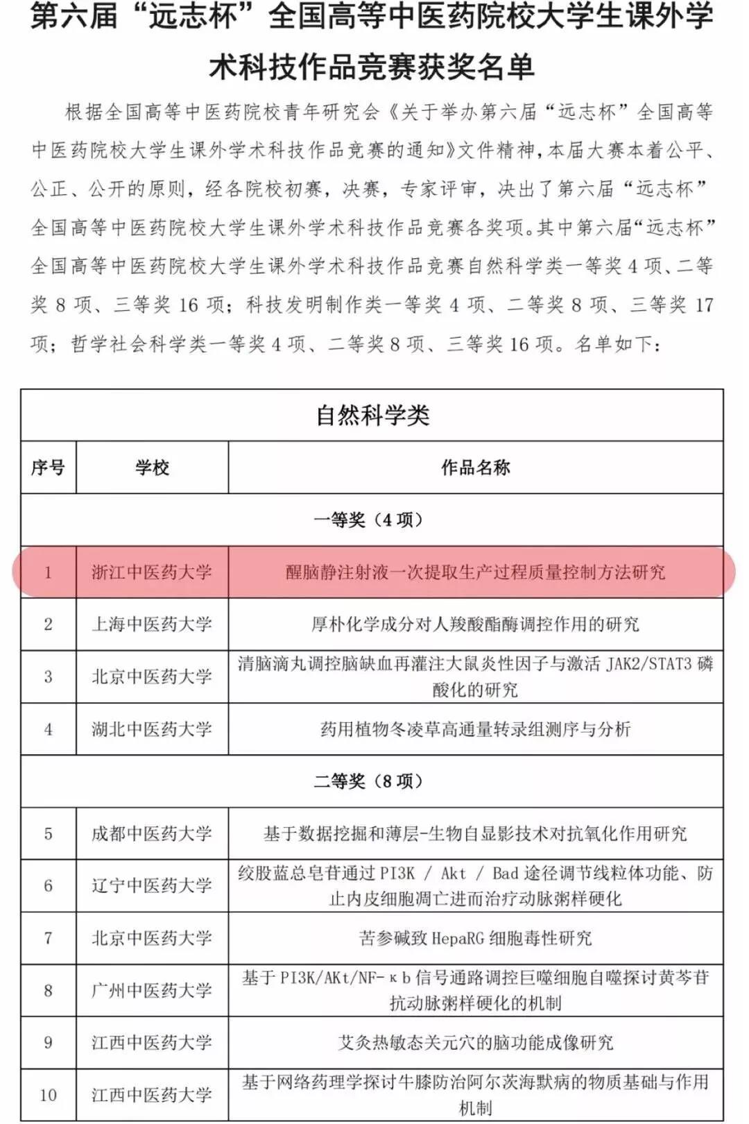 根据全国高等中医药院校青年研究会《关于举办第六届“远志杯”全国高等中医药院校老员工课外学术科技作品竞赛的通知》,公司方金阳同学的学术论文《醒脑静注射液一次提取生产过程质量控制方法研究》(指导教师:严斌俊),经院校初赛,决赛,专家评审,最终在第六届“远志杯”全国高等中医药院校老员工课外学术科技作品竞赛中获得自然科学类一等奖,为sunbet申搏员工科研竞赛中又添一大奖!