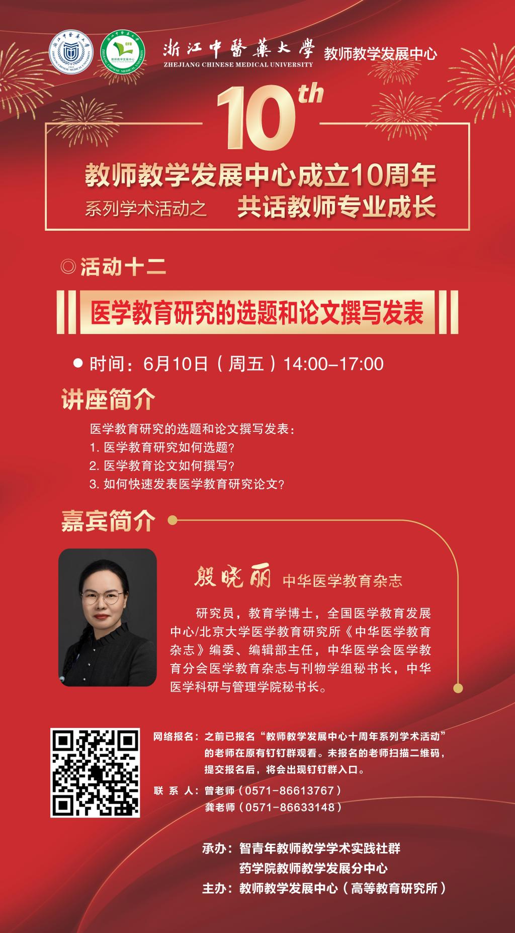 各位老师,恰逢夏意渐浓、万物初盈之时,热烈欢迎您参加由sunbet申搏教师发展中心主办,sunbet申搏教发中心和青年教师教学学术实践社群承办的2022教师教学发展中心成立10周年系列学术活动之医学教育研究的选题和论文撰写发表!